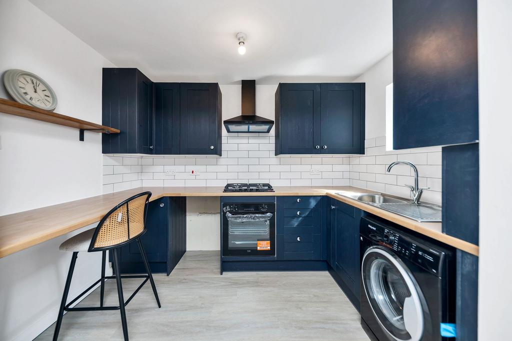 The kitchen is brand new and a very good size, enjoying a window, a range of base and wall units, laminate worktops, tiled flooring and splashbacks, pendant lighting, an integrated oven, gas hob and extractor fan, and space for a fridge/freezer, washing machine and other kitchen appliances, there is also a small breakfast bar area
