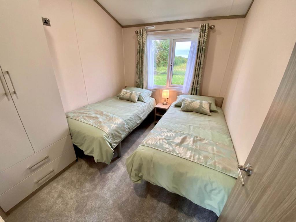 Twin bedroom with 2 x 3ft wide beds wardrobe and nightstand.