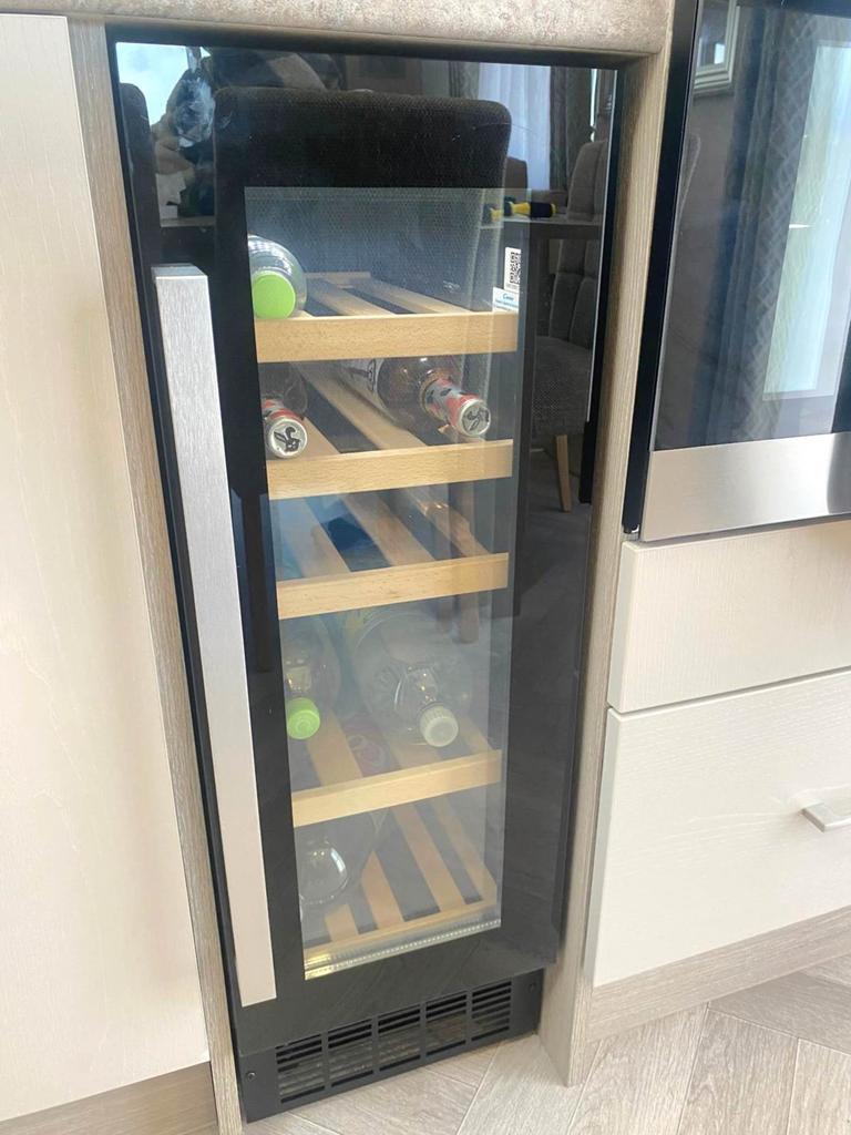 Fully equipped kitchen area, with integrated fridge freezer, oven, microwave, wine cooler, washing machine, 5-burner gas hob.