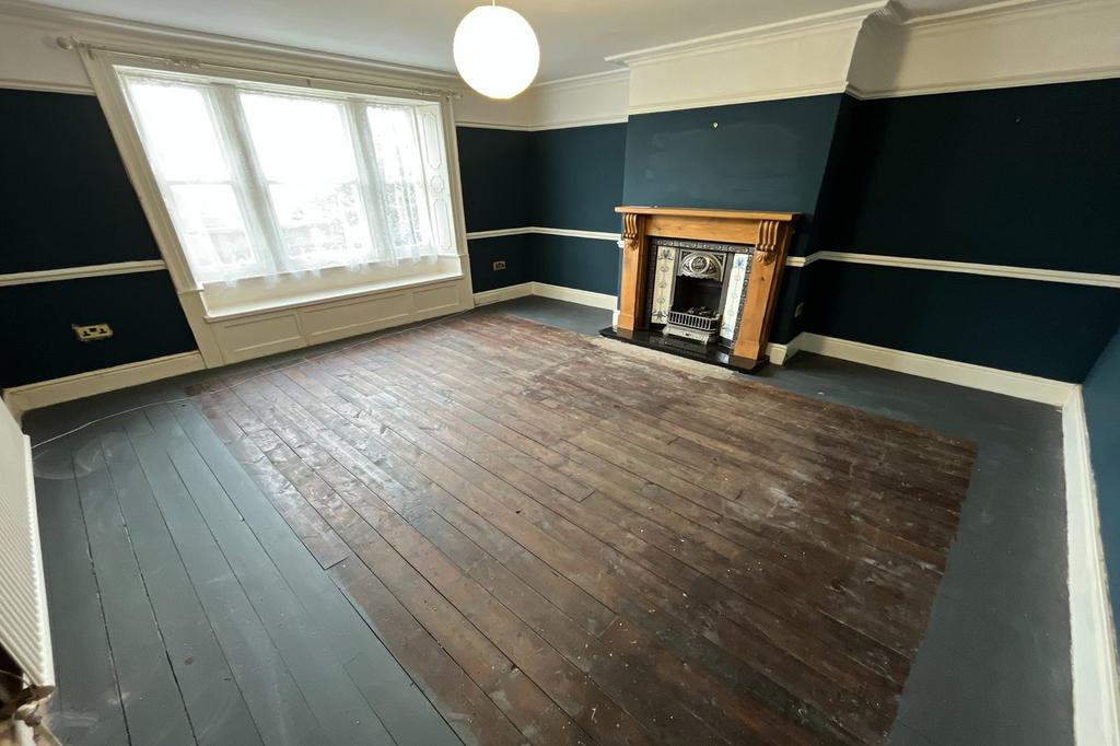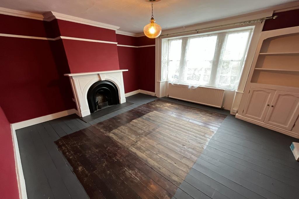 Triple sash window to front, cast iron style fire surround, tiled hearth, double radiator, coved ceiling, picture rail, painted floorboards