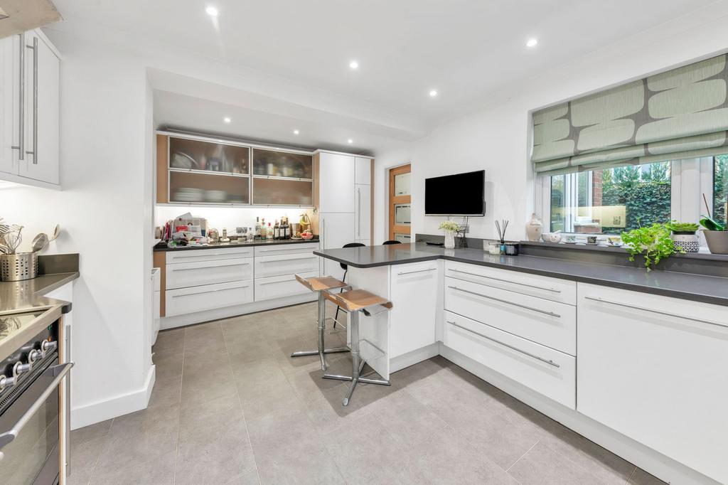 The kitchen/breakfast room is a very good size, enjoying windows to a dual aspect, a modern range of base and wall units, quartz worktops, a breakfast bar, tiled flooring, inset lighting, a range cooker, an extractor hood, an integrated microwave and dishwasher, and space for other small kitchen appliances. The utility room provides further storage, access to the side and to the garage, and space for large laundry appliances.