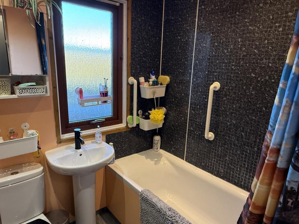 Whit suite with electric shower over the bath. Partial wet wall panels. Xpelair extractor fan. Window to the rear of the property. Radiator.