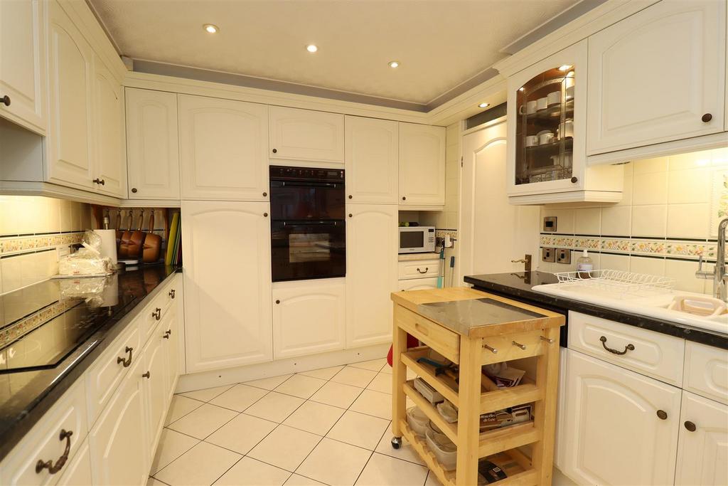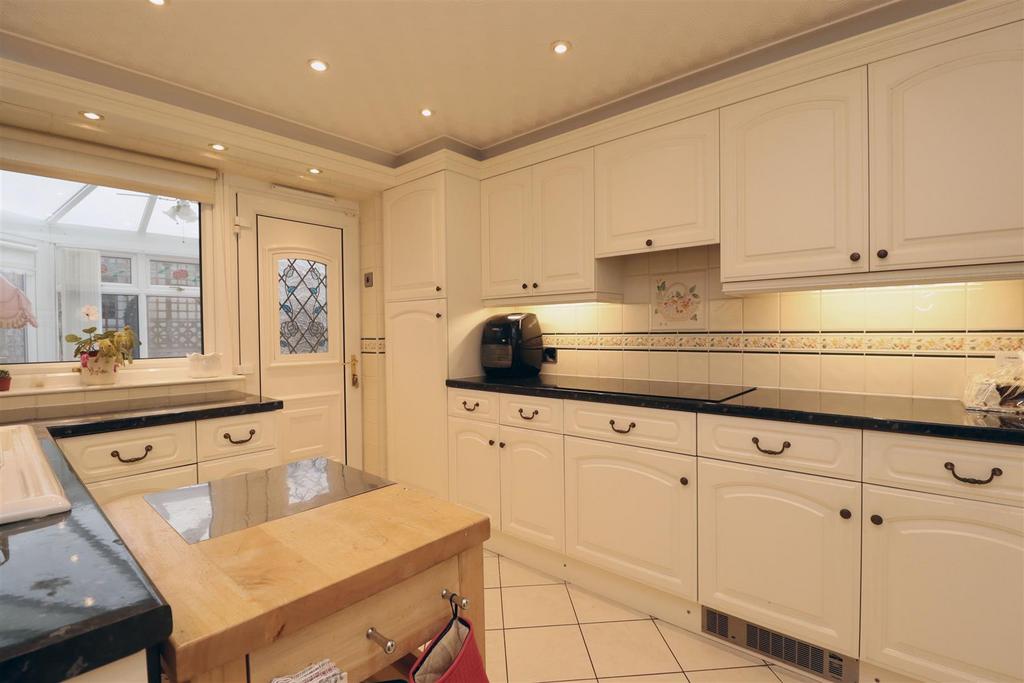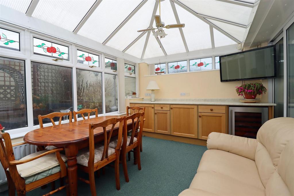 The accommodation includes front porch with built in storage, lounge which features an electric fireplace, dining room, additional sitting room and the kitchen is well-equipped with a range of integrated appliances, including a fridge, freezer, double oven, hob, dishwasher, and waste disposal. The patio doors from the dining room and also the kitchen lead into the conservatory, which features a counter space with a dryer and washer, plus a large wine fridge which are included in the sale. Three well-sized bedrooms, with two benefiting from built-in wardrobes, and a study that could easily be used as a fourth bedroom if required.