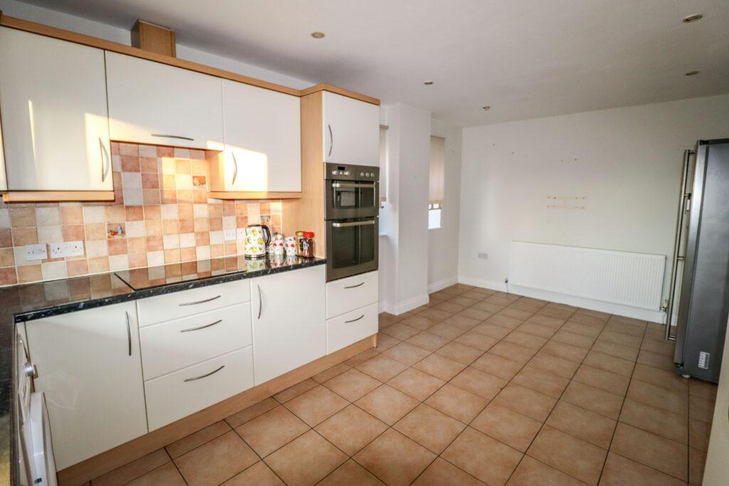 17'6" x 10'8" (5.33m x 3.25m) Fitted on three sides with attractive units. Range of worktops with drawers and cupboards under. Inset one and a quarter bowl single drainer stainless steel sink unit with mixer taps and a cupboard under. Matching high level cupboards. Built in eye level stainless steel double oven. Inset four ring Induction hob with a concealed extractor over. Integral dishwasher. Space for a fridge / freezer. Recess with plumbing for a washing machine. Wall hung Worcester gas boiler in a matching unit. Walls part tiled. Radiator. Inset ceiling spotlights. Television point. UPVC double glazed window to the front. Two UPVC double glazed windows to the side. Ceramic tiled floor. Space for a kitchen table.