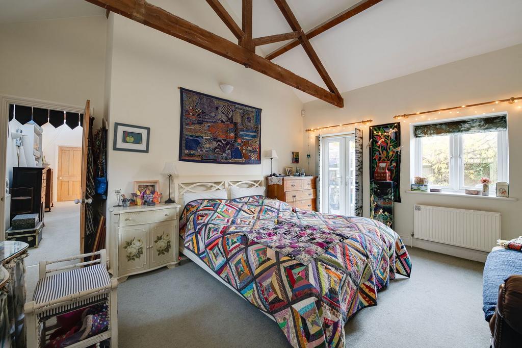 As you continue through the dining area, one enters another hallway superbly lit by a duo of skylight windows, there is a separate cloakroom with toilet and basin and a lovely four piece bathroom. On the left hand side are three attractive double bedrooms, bedroom four benefitting from an array of fitted wardrobes. All bedrooms offering appealing vaulted ceilings and characterful beams.