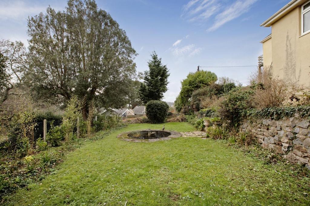 A few steps lead down a pathway to the front door and there is a front lawn. By the garage there is also a path to the side door where there is an outside tap. A path the other side of the house leads round to a side brick paved terrace where there are steps down to a corner level and steps to a rear brick paved patio where there is a door to the Annexe and another outside tap. Further steps lead down to a lawn with ornamental pond. There are sea views to the rear and side.
