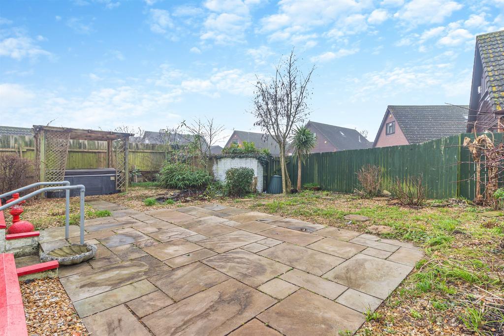 Moving to the rear, you'll find a predominantly paved area, perfect for outdoor entertaining or relaxation. The garden is bounded by fencing and is planted with a selection of shrubs, while a garden pond serves as a delightful focal point. For added convenience, a rear access gate provides easy entry and exit to the property. The garden is enclosed and has recently been cleared for the new owners, and now offers a blank canvas.