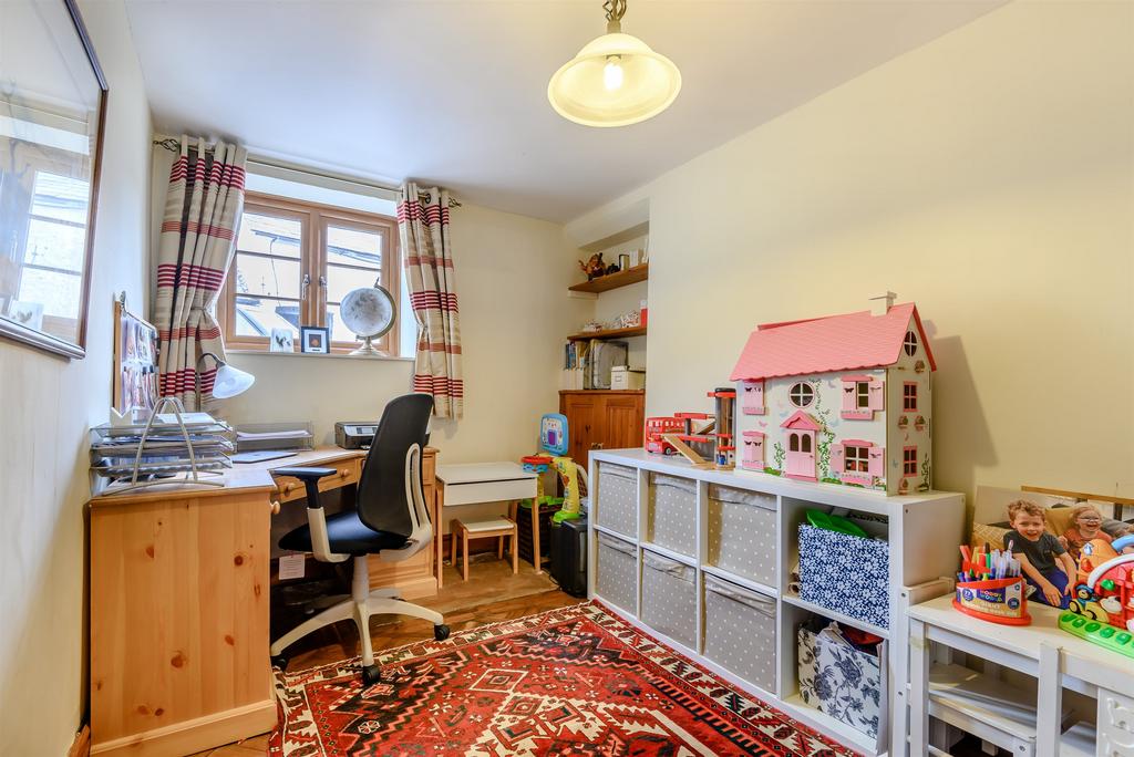 Ascending to the first floor, you are welcomed by a galleried landing that exudes character and light. Overlooking the living room below, this space creates a sense of openness and connection within the home. Natural light is introduced through two Velux windows, enhancing the airy ambiance, while fitted storage and an airing cupboard add practicality to the charm.