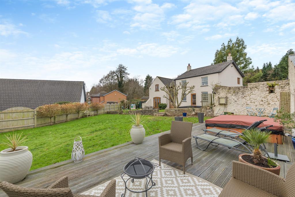 The rear garden, accessed through gated entry, is a delightful south-east-facing retreat. Spacious and well-bounded for privacy, it features multiple seating areas ideal for entertaining, dining al fresco, relaxing in the hot tub, or simply soaking up the tranquil surroundings.