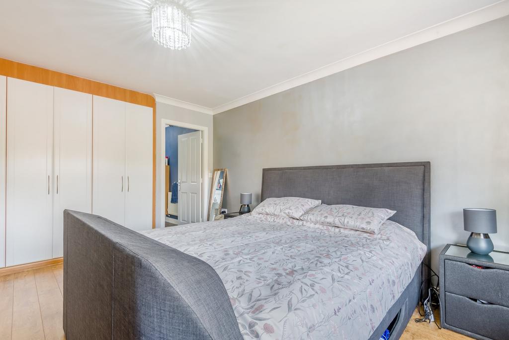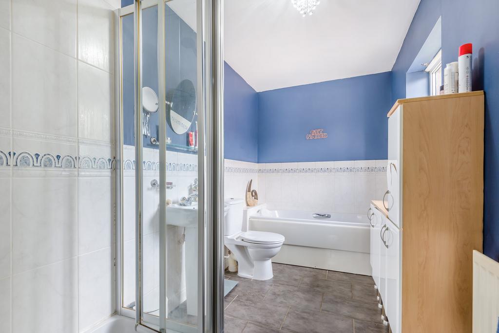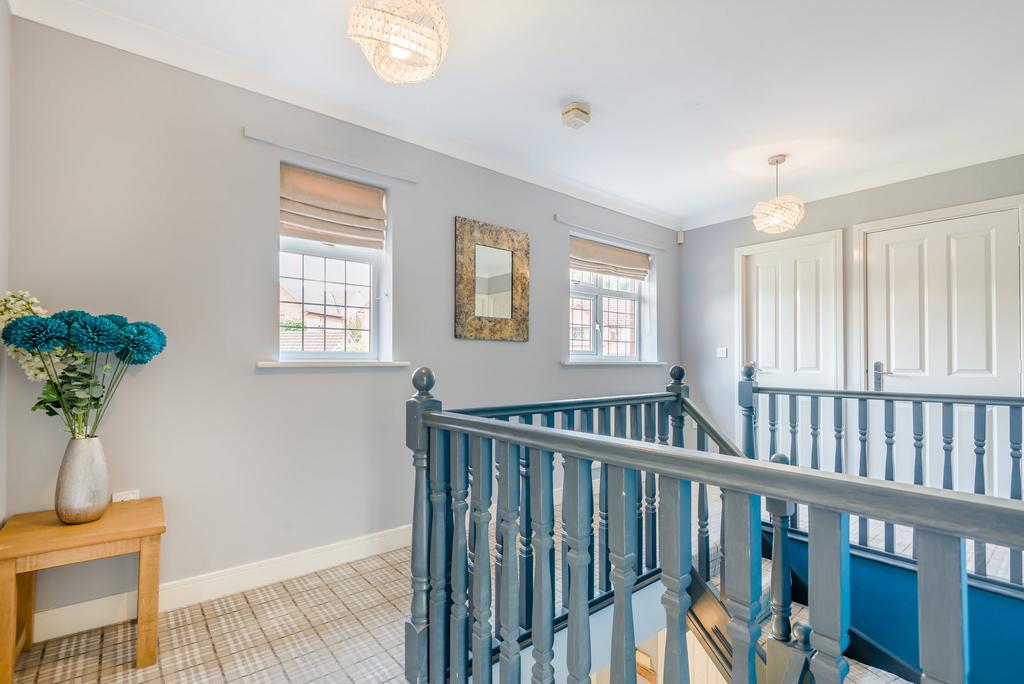 On the first floor, a light and airy landing leads to four double bedrooms. The generous main bedroom has a bay window overlooking the front of the property and benefits from attractive, contemporary-style, built-in wardrobes. It also has a luxurious ensuite bathroom with both a bath and a step-in shower cubicle with a power shower.