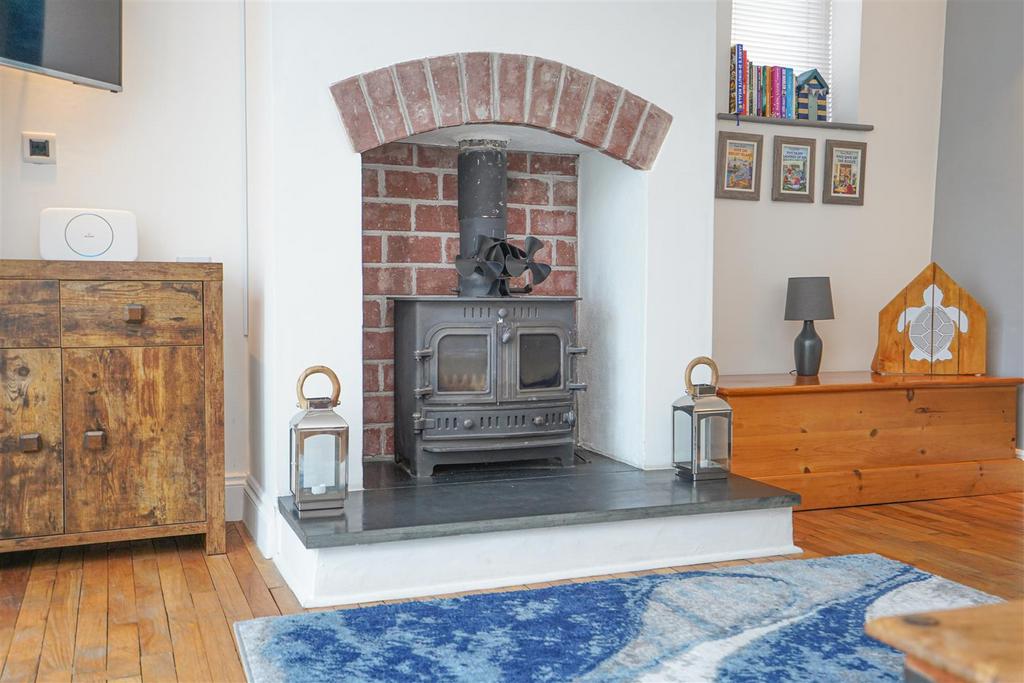Lounge - 4.40 x 3.80 (14'5" x 12'5") - A comfortable reception room boasting an attractive fireplace with exposed brick detail and slate hearth housing the wood-burning stove. Double doors lead into the conservatory.