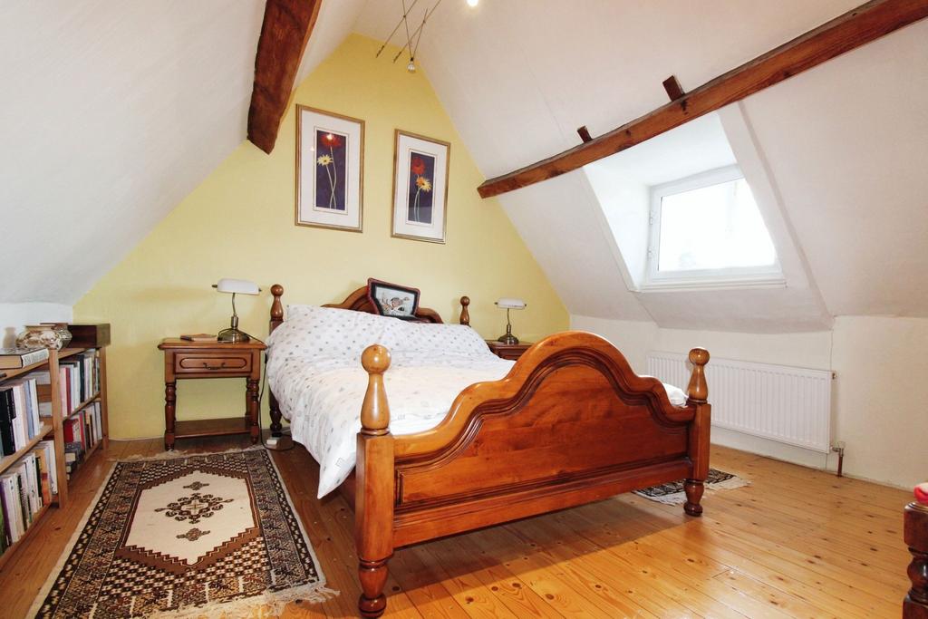 Upstairs, the first floor is fully carpeted and has a large landing currently used as a study area. From here, there are two double bedrooms. The main bedroom includes a full wall of built-in wardrobes, and both bedrooms are served by a shower room on this floor. A further hallway leads to a walk-in wardrobe and a staircase ascending to a third double bedroom. This room features wooden floorboards and beams, offering views of the high street and St. Mary's Church. The fourth bedroom, accessed via a separate staircase, is accessed via a large dressing room with original beams and secondary glazed windows, the bedroom is full of quirky features, such as built-in cupboards that reveal original brickwork, and there is plenty of fitted storage throughout.