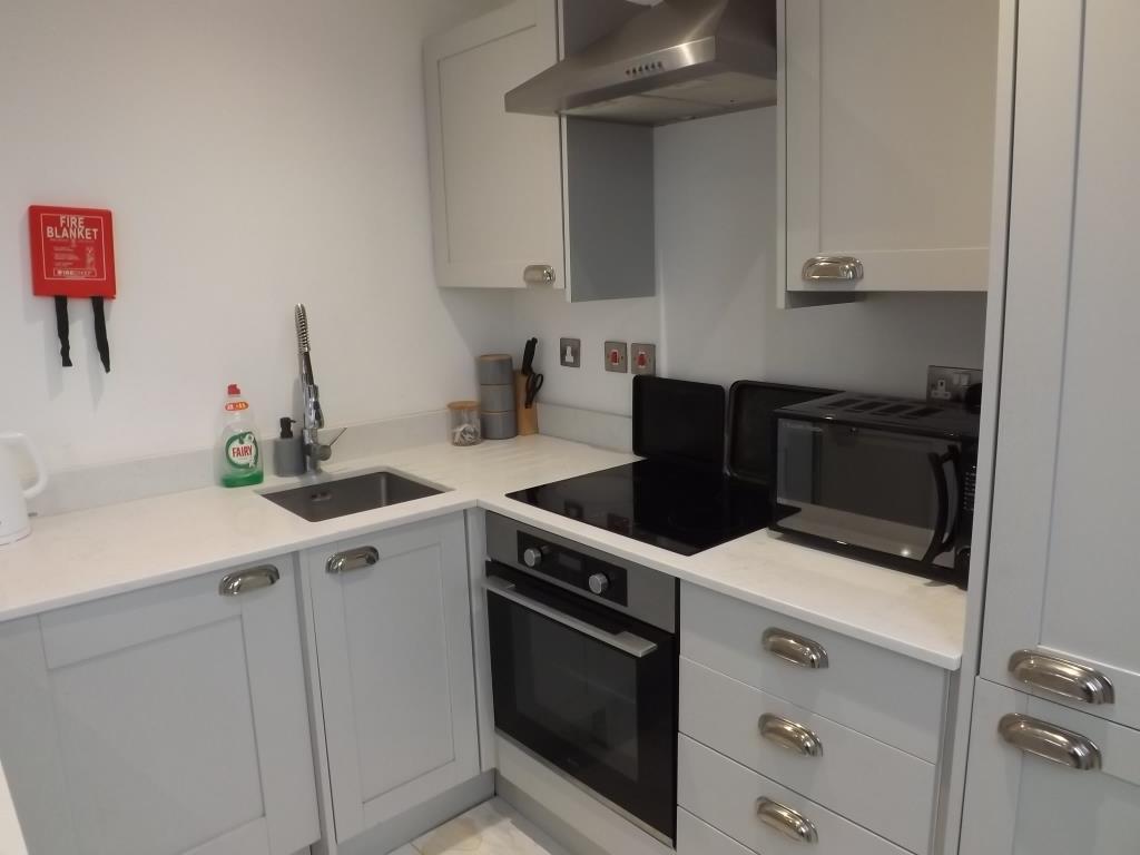 This two bedroom property comes with high-end fixtures and finishes, the stylish apartment also comes fitted with a modern kitchen with Induction hob, an integrated washing machine, dishwasher and fridge freezer. There is even a Microwave, Kettle, Toaster and crockery.