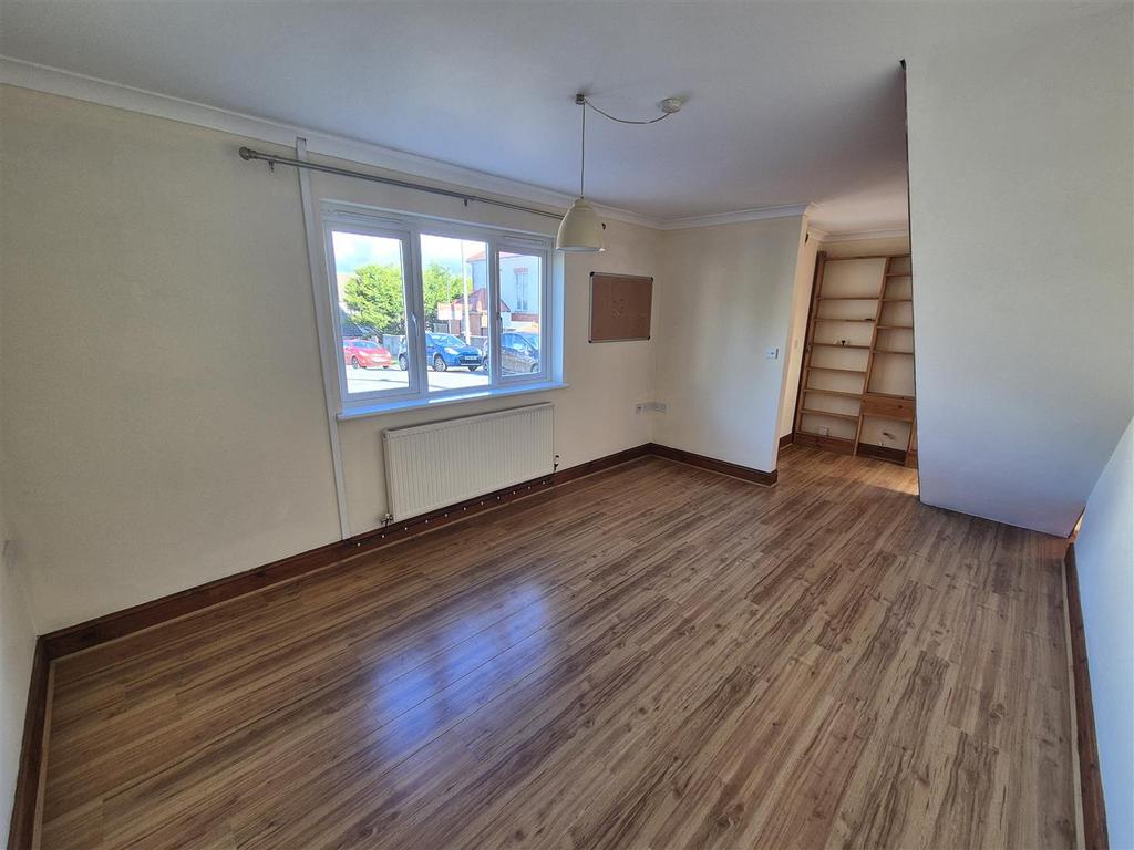 Living Room/ Ystafell Fyw - 4.42m x 3.20m (14'6 x 10'6 ) - with stairs to first floor accommodation, radiators, shelving and window to fore.
