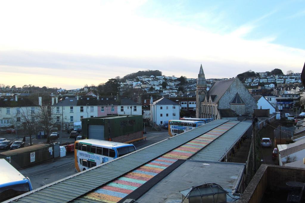 Large UPVC double glazed window enjoying rooftop views over Paignton Town Centre. Wall mounted night storage heater. Built-in wardrobe with hanging rail and shelving.