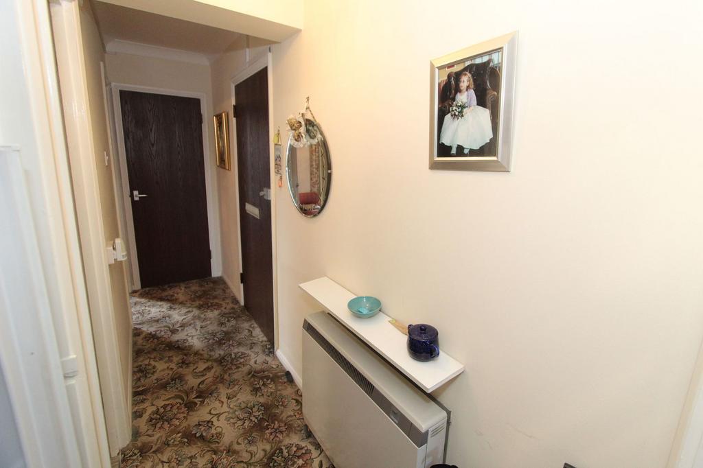 Doors to all principle rooms. Wall mounted night storage heater. Useful cupboard recess ideal for housing a fridge freezer. Further cupboard with shelving and housing electric meter and circuit breaker box. Smoke alarm.