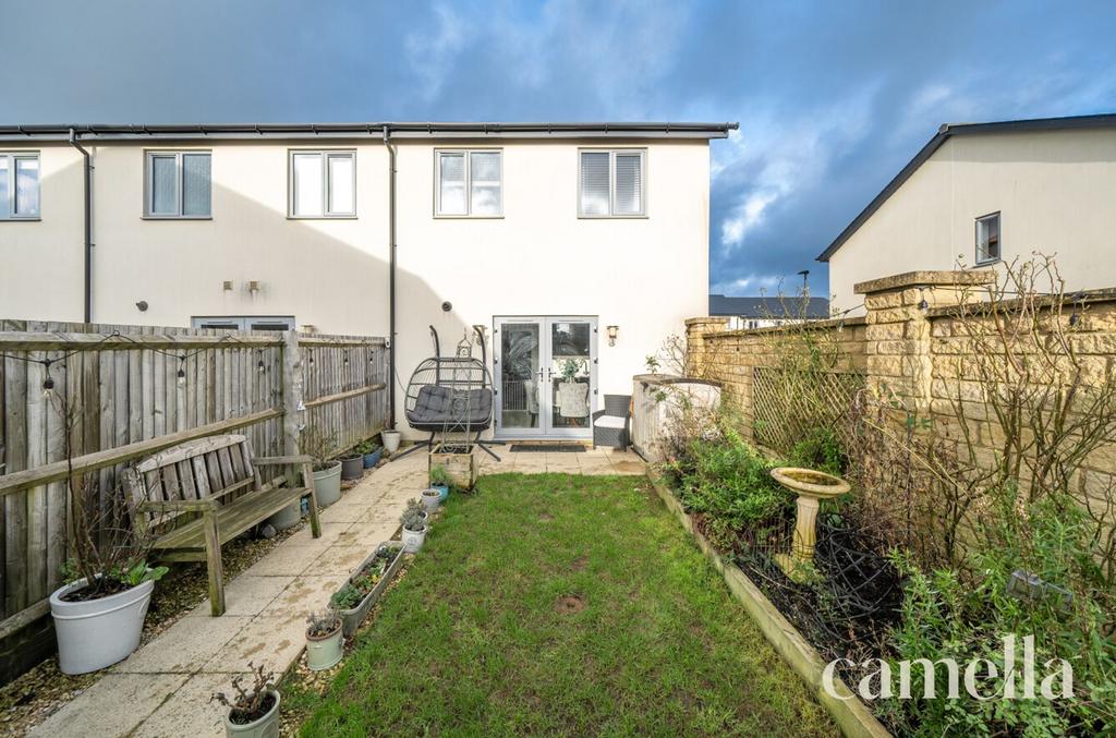 French doors open directly into the garden, offering a seamless indoor-outdoor flow and filling the space in natural light.