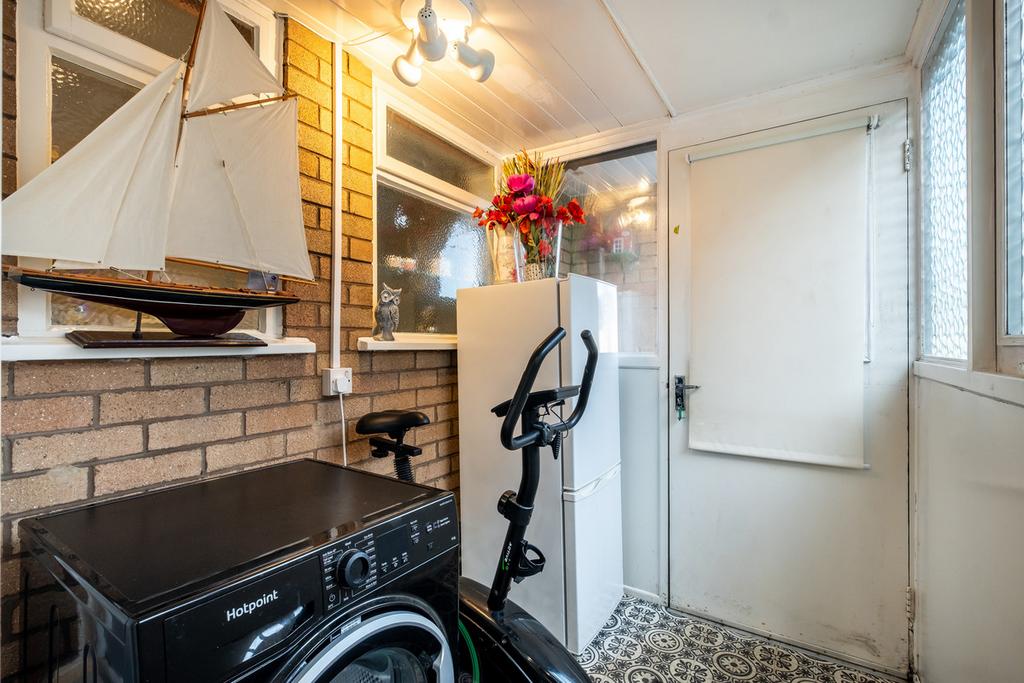 External door leading to the rear external staircase. Space and plumbing for washing machine and fridge freezer.