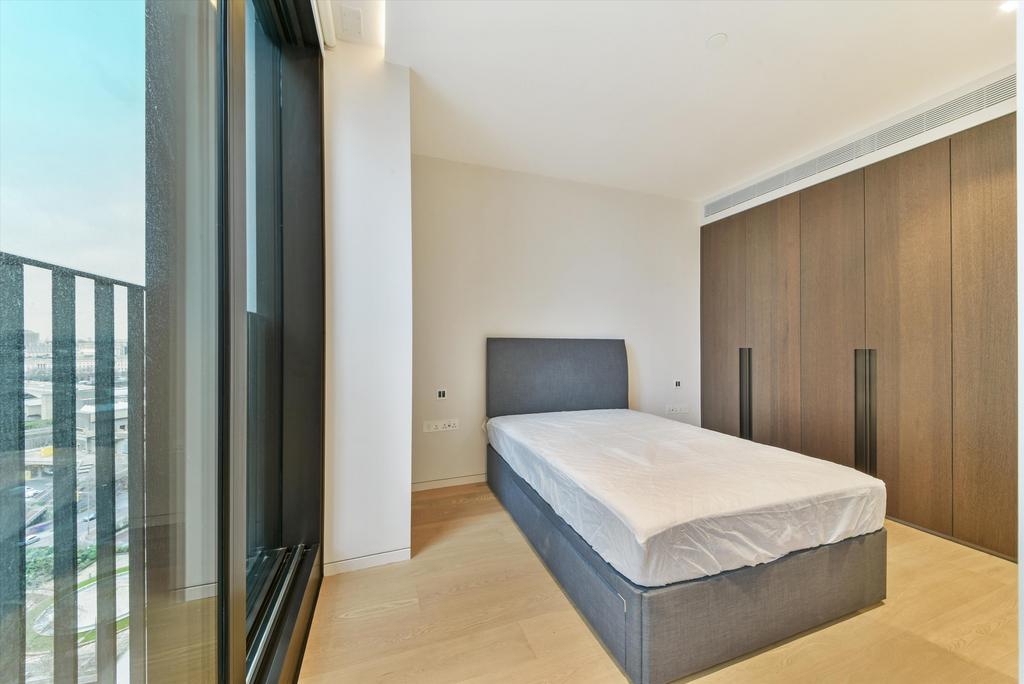 Perched on the 13th floor, this stylish one-bedroom apartment offers contemporary living in one of London's landmark developments. The modern kitchen is fully equipped with state-of-the-art Miele appliances, including a dishwasher, oven, and fridge/freezer, ensuring both functionality and elegance. The spacious reception room, enhanced by floor-to-ceiling windows, provides an abundance of natural light and ample space for dining and relaxation.