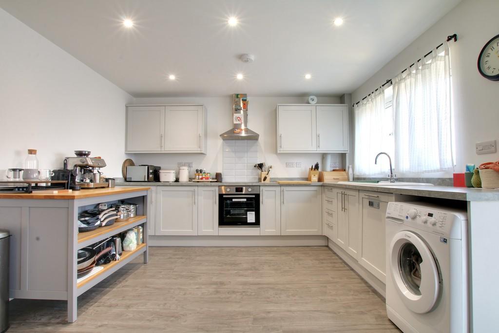 Kitchen area is fitted with a modern range of wall and base units housing single electric oven and four ring ceramic hob with extractor over, washing machine included, integrated fridge and freezer, 1 ½ ceramic sink and drainer, window to rear. In the living dining area there are bifold doors leading out to the rear garden