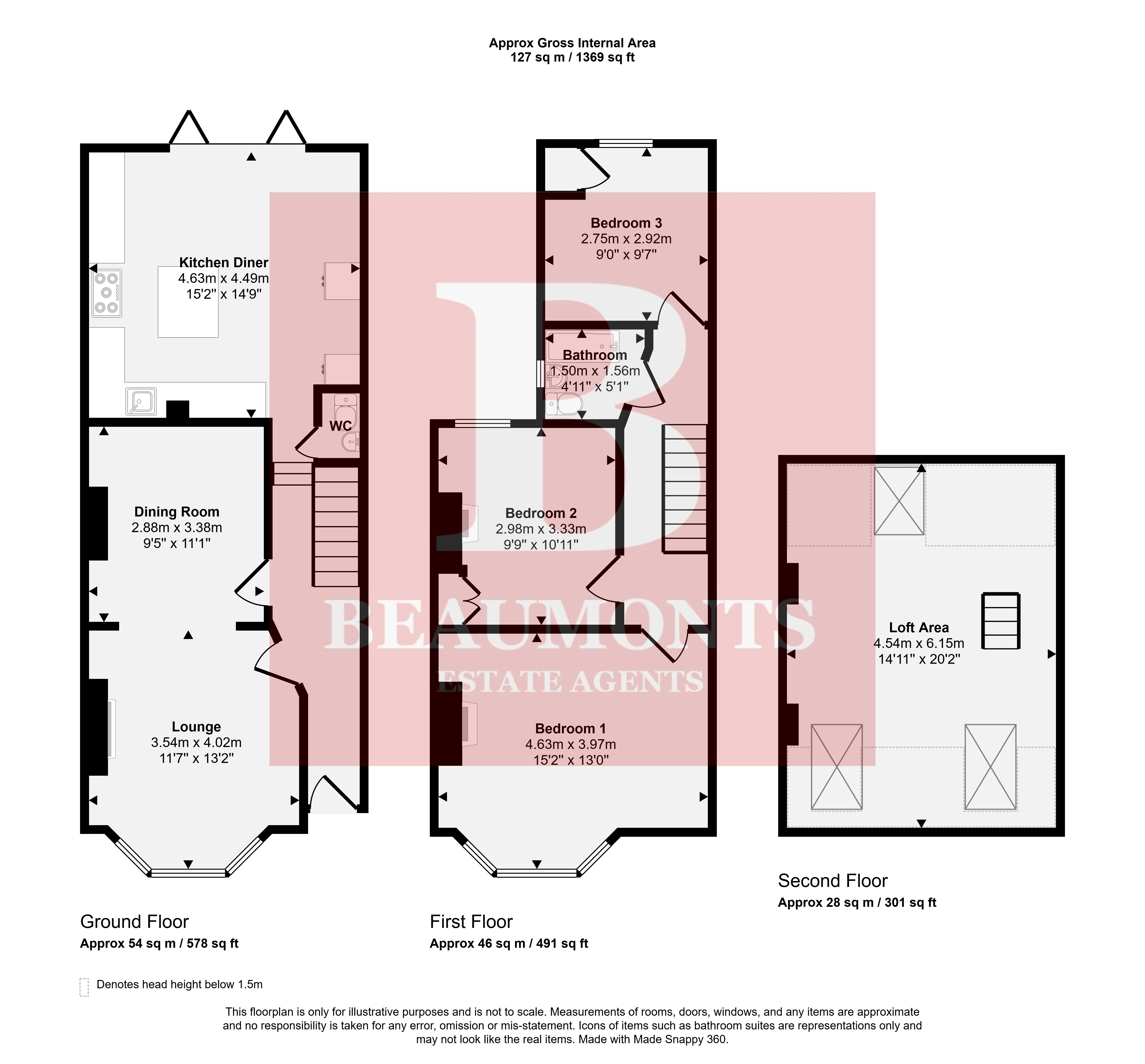 - Three Double Bedrooms
