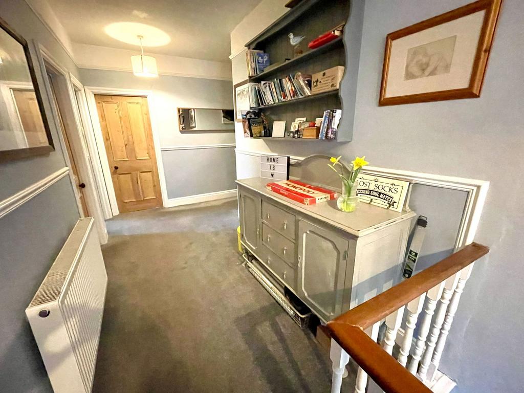 An impressive entrance to the property with its turning staircase to the first floor, feature radiator, further original encaustic flooring, under stairs cupboard, dado and picture rails.