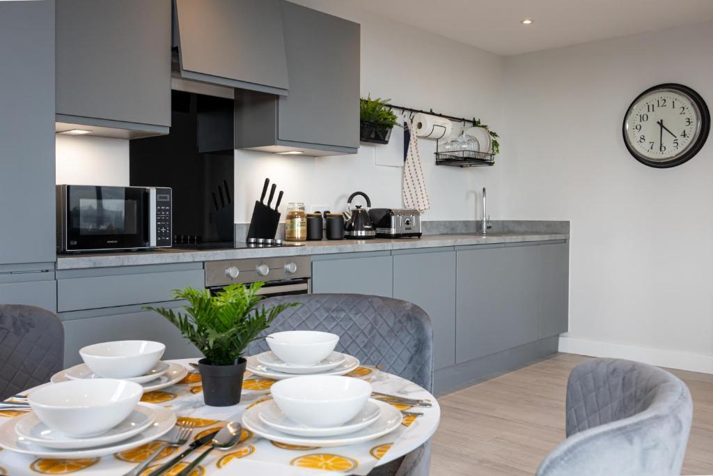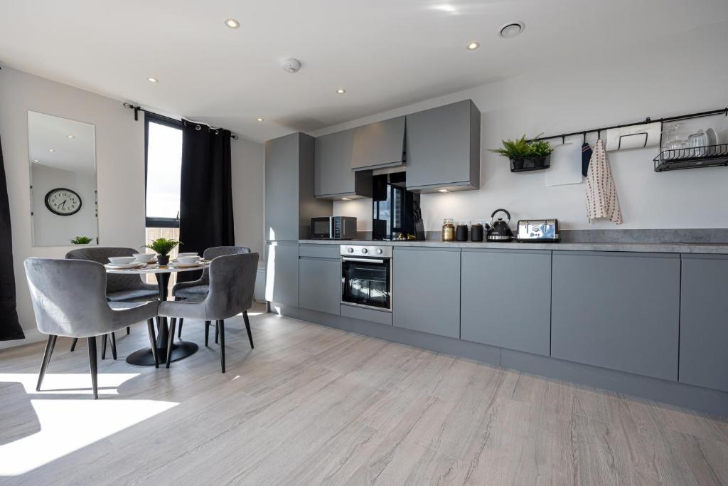 With convenient access to main motorways, this location offers superb connectivity for easy commuting. Each apartment is designed with high-quality finishes, including Villeroy and Boch-style ceramic fittings in bathrooms, wall-mounted drench shower heads, and fully carpeted bedrooms. Double glazed windows, slim line radiators, and heated towel rails add to the overall comfort and sophistication of the living spaces.