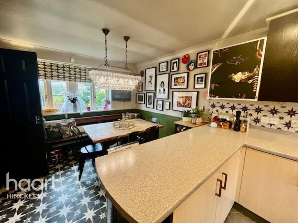 A full range of units, comprising wall and base units, working surfaces over with 1.5 bowl sink unit , double oven, gas hob with extractor fan, integrated dishwasher, radiator, tiled flooring, window to both front and rear,