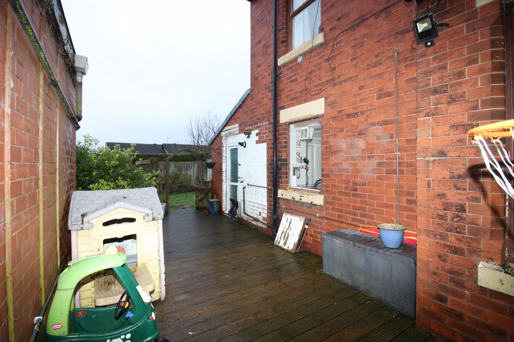 Plumbed for washing machine with space for tumble dryer, door to the side aspect and rear garden and shower room.