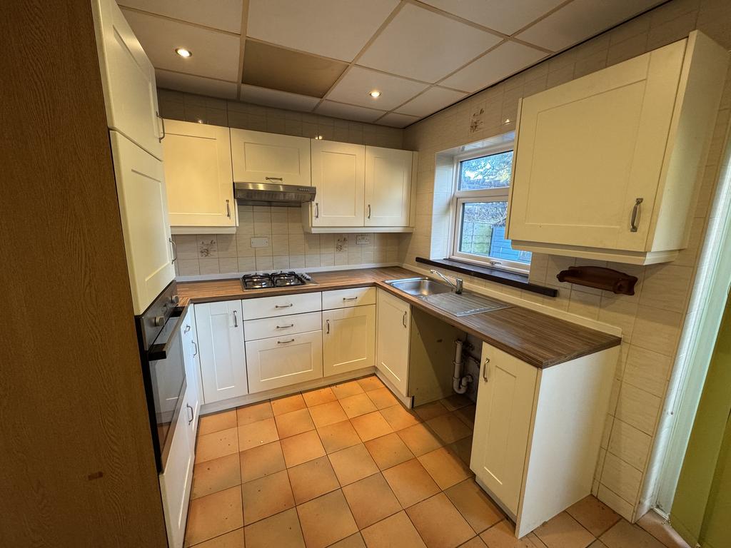 Dining Kitchen. 4.40 m x 3.07m, UPVC Double glazed French doors and window to rear, gas central heated radiator, range of wall and base units, mid level electric oven, gas hob, stainless steel sink unit.