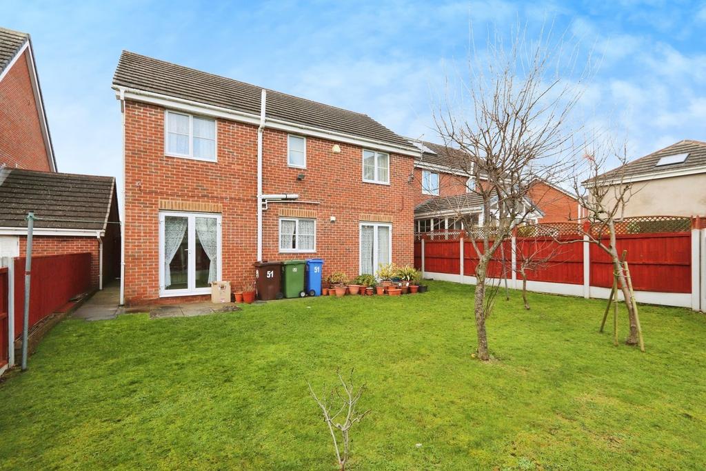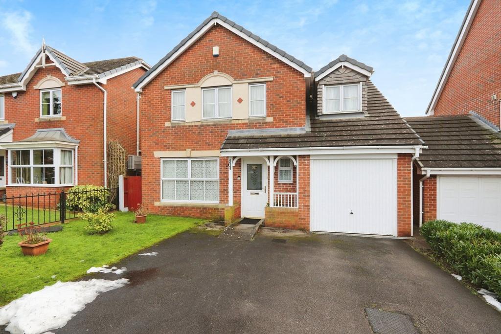 To the front is a lawned garden with shrubs and hedges, a sheltered entrance porch and a double driveway providing off-road parking for two cars and giving access to an integral garage with an up and over door, power and lighting. To the rear is a spacious and well-presented lawned garden with a paved patio and side pathway, multiple planted trees and wooden fencing to the perimeter. The property is set within a pleasant and sought after cul-de-sac overlooking a lovely communal green area with a pond and established beds, and is located close to local amenities, schools and both road and public transport links into the city centre further afield.