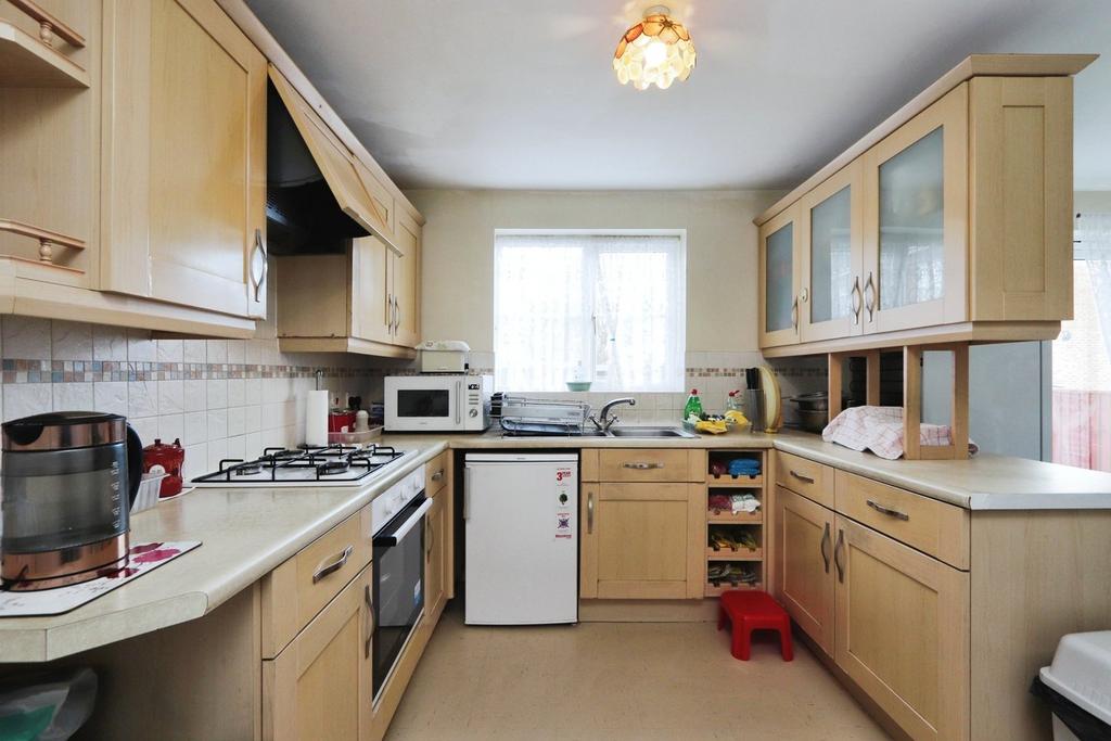 Kitchen/Diner - Fitted with a range of wall and base units with complementing worktops, an inset stainless steel 1.5 sink basin with a drainer and mixer tap, an integrated oven with a countertop gas hob and overhead concealed extractor system, space for further appliances, a rear aspect double glazed window, tiled effect flooring, tiled splashbacks, a radiator and open access to an area which could be used for sitting, dining or home working if desired with a rear aspect double glazed window and a radiator.