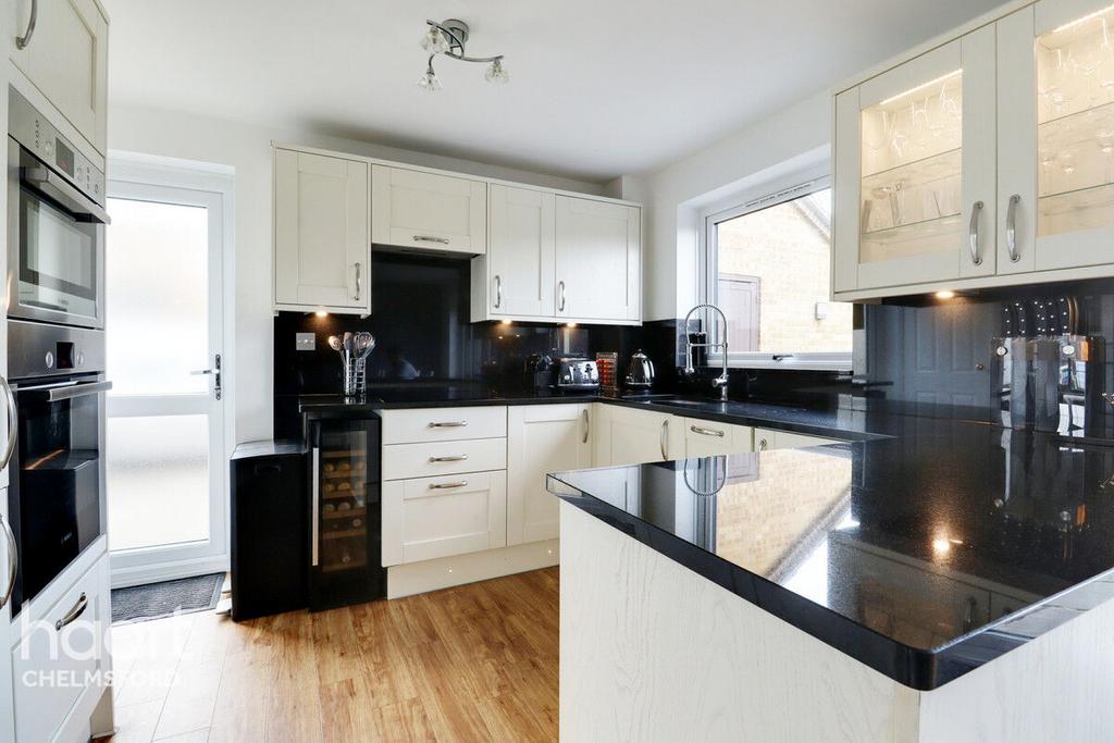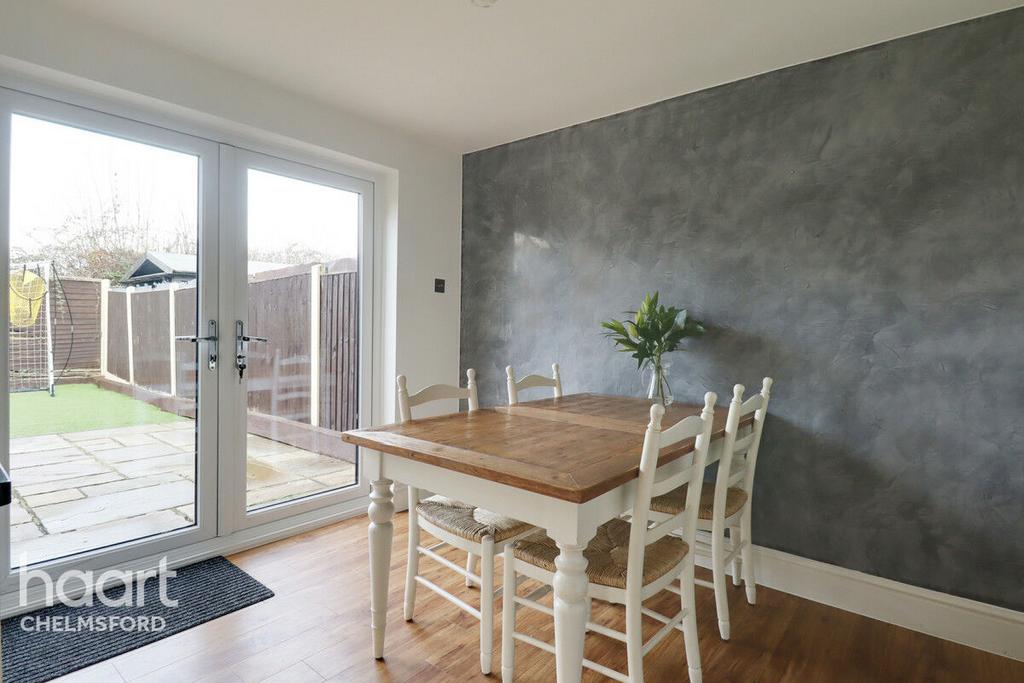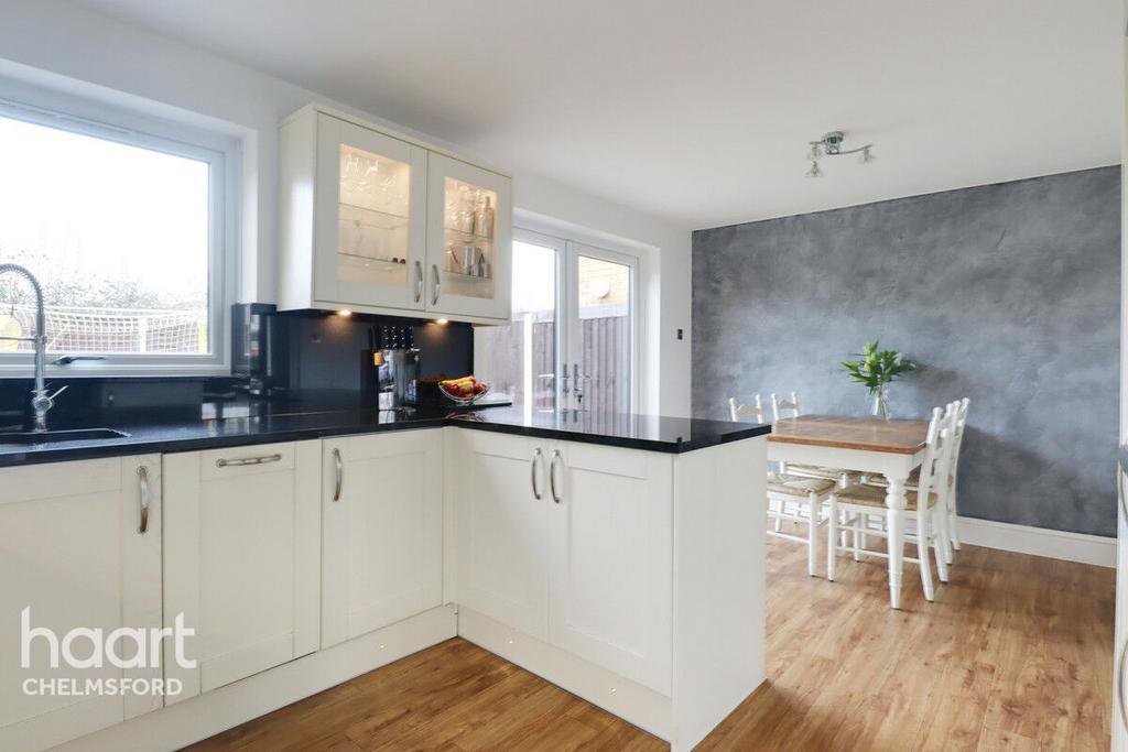 Smooth ceiling, door to the side aspect, doors to the rear aspect leading to the garden, double glazed window to the rear, built in oven, electric hob, extractor fan, matching eye and base level units, integrated dishwasher and wine cooler, built In cupboard, dining space, radiator, tiled flooring