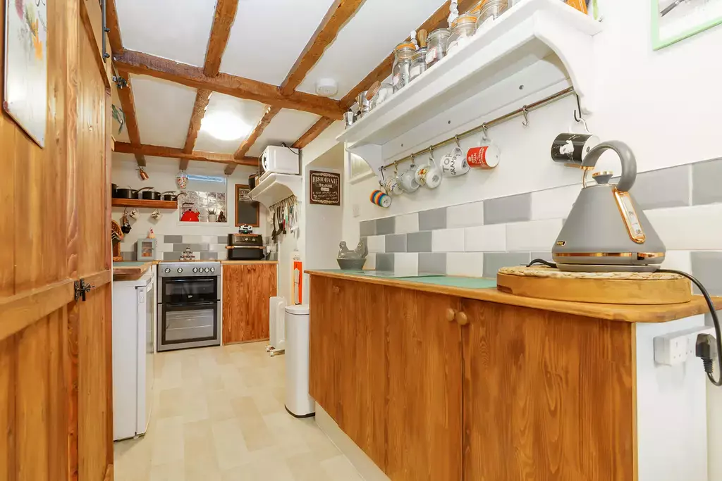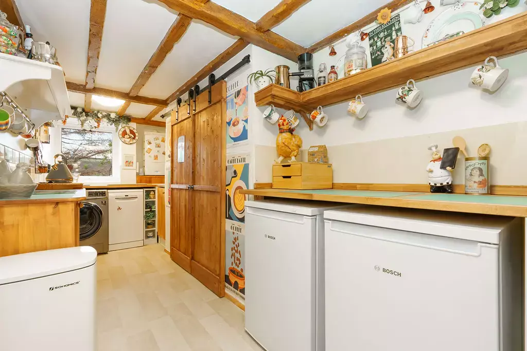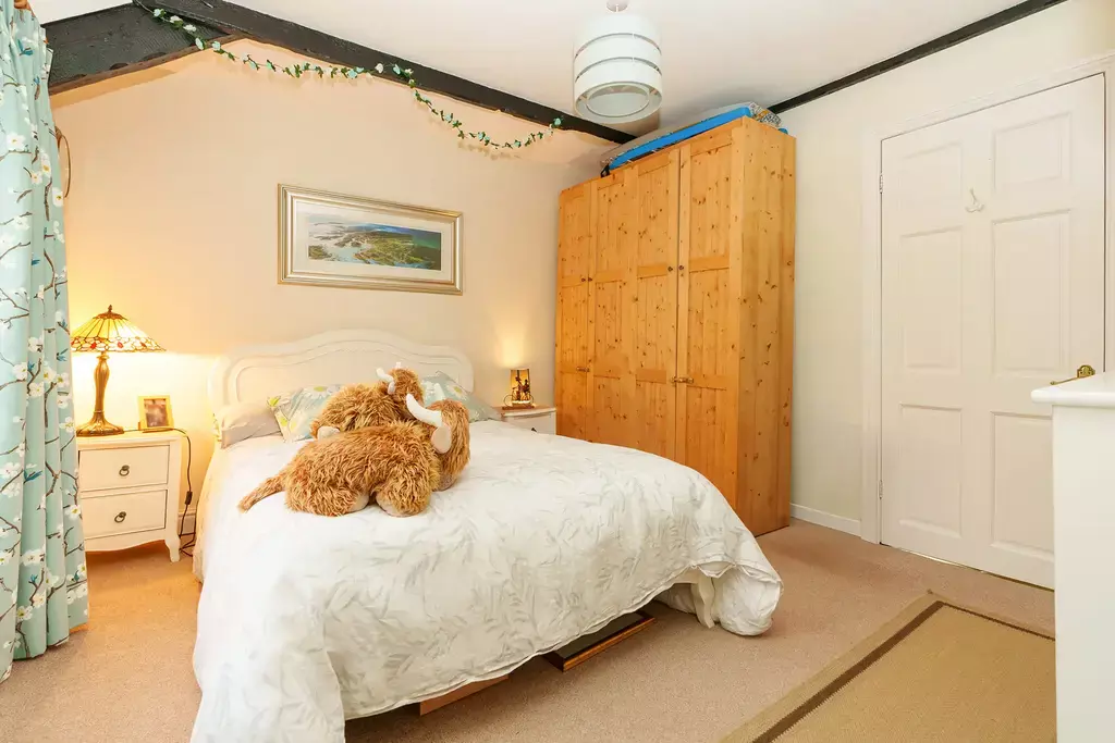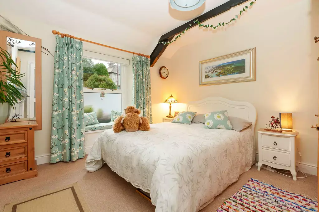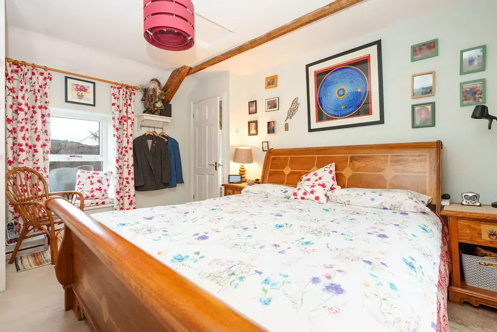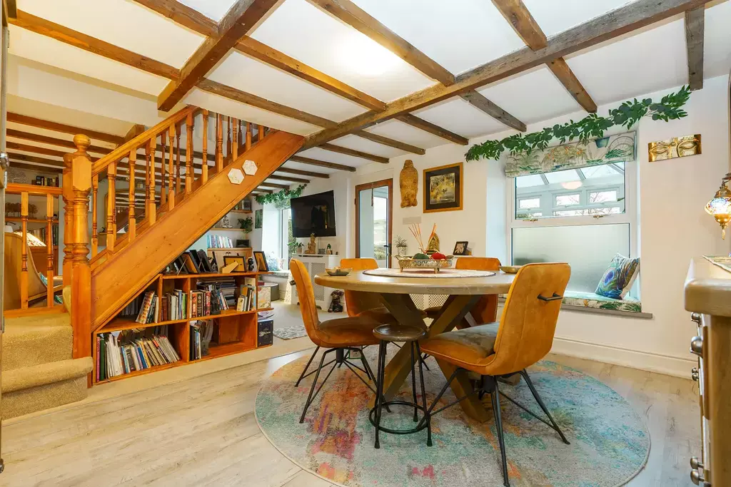 Sympathetically updated to an exceptional standard, the cottage perfectly marries contemporary luxury with timeless character and charm. The stunning 25ft living/dining room is a true centre piece, featuring exposed beamed ceilings, custom window seats that frame the captivating views, and a newly installed log burner by The Snug of Ramsey. There is a lovey conservatory off the living room and a separate kitchen complements this inviting ground-floor layout.