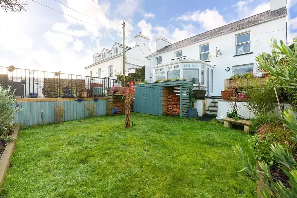 The outdoor space is equally impressive, with a beautifully landscaped terraced garden that includes a generous decking area—perfect for entertaining or alfresco dining while soaking in the stunning harbour and bay vistas. Additional features include a paved patio, a custom-built storage shed/log store, and a lawned area bordered by mature shrubs. There is also on street parking in close proximity to the property.