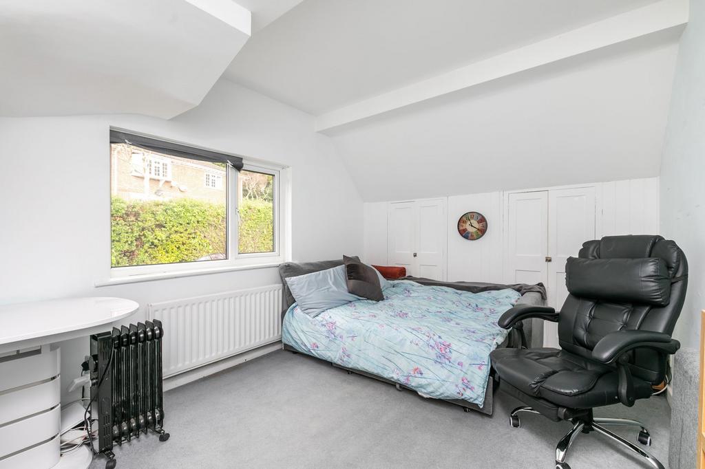 This well proportioned semi detached house has been extended to the ground floor, providing a garden room which is currently a consulting room, although would make an excellent dining room. The sitting room has a front aspect window and an open fireplace, the kitchen is fitted with modern base and eye level units, with wooden worktops and a rear aspect. There is a bathroom and utility cupboard that complete the ground floor accommodation. The first floor has three bedrooms, the largest having fitted wardrobes. The second floor has had a conversion which has a good double bedroom and an ensuite bathroom. Externally there is a part walled garden to the rear that is laid to lawn with flower and shrub borders, where through Summer to Autumn, a beautiful variety of English roses bloom. To the front is a wooden shed and outside the house on the road is a zoned parking area, for which residents can get a parking permit and/or a visitor permit.