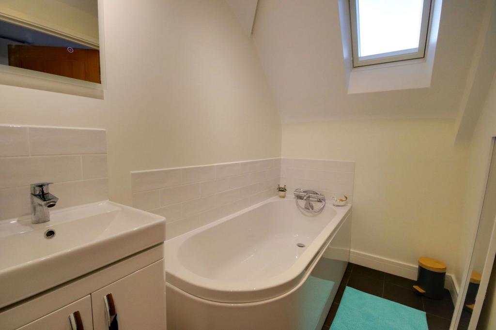 A double glazed skylight window to the front aspect, recessed spot lights, extractor fan, loft hatch, chrome towel radiator, touch sensitive electronic mirror, shaving socket and Underfloor heating with vinyl flooring. There is a three piece suite comprising of a bath with a mixer shower attachment, pedestal wash hand basin and a low level WC.