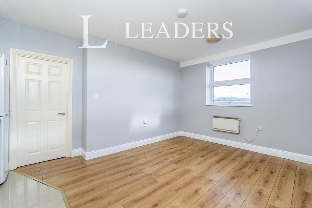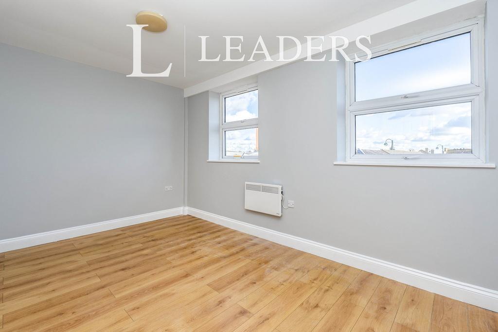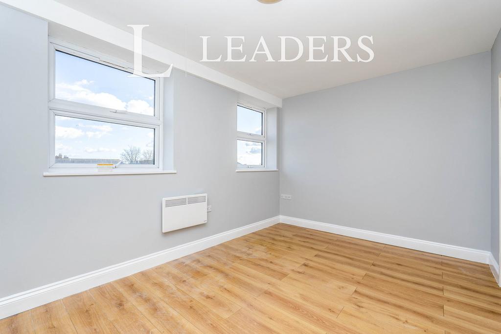 Accessed via a communal entrance, stairs lead up to the second floor. The apartment comprises an entrance hall with a storage cupboard and an airing cupboard. The open-plan kitchen/living room features a front-facing window, while the double bedroom also faces the front. A second bedroom with a side-facing window and a bathroom/WC complete the accommodation.