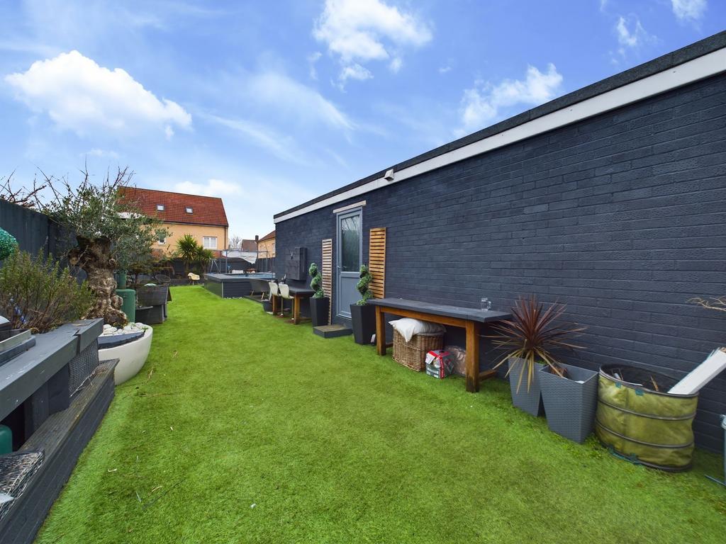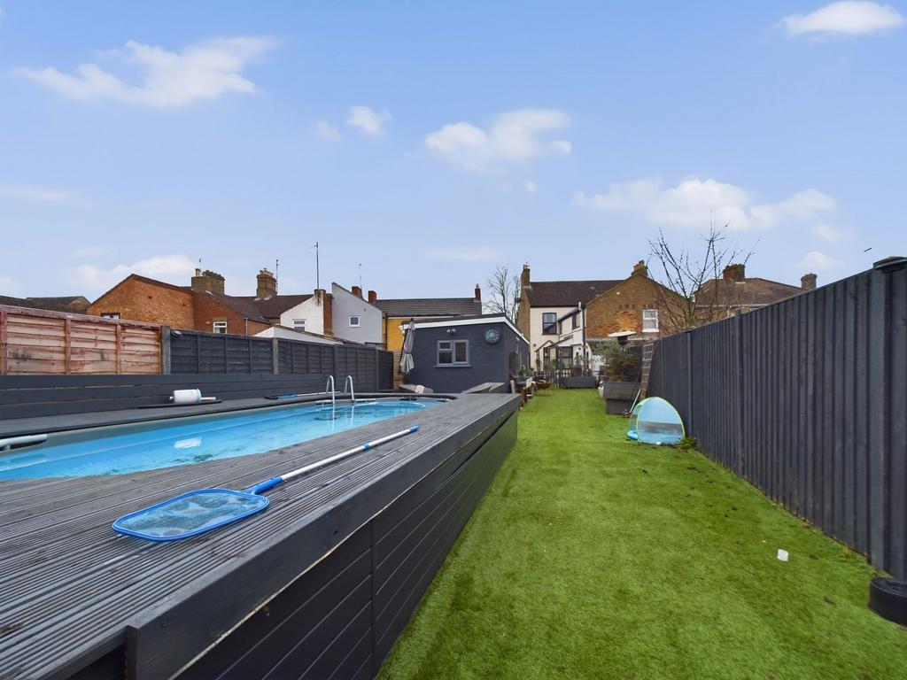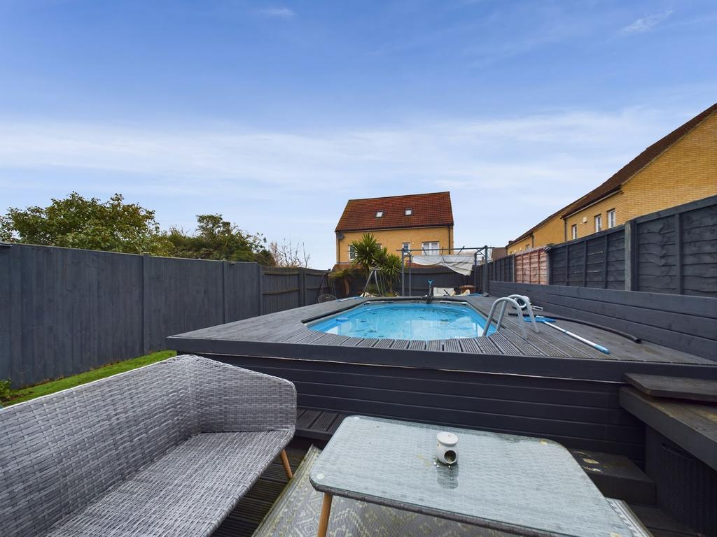 There is a lean-(4.51 x 2.52) at the side of the property which could do used as a car port or additional outdoor storage. The gate could also be moved back to create more parking on the driveway. This leads to a fully enclosed rear garden which has been covered with artificial lawn providing easy maintenance. There is an enclosed swimming pool (which is easily removable) with surrounding deck area and seating area.