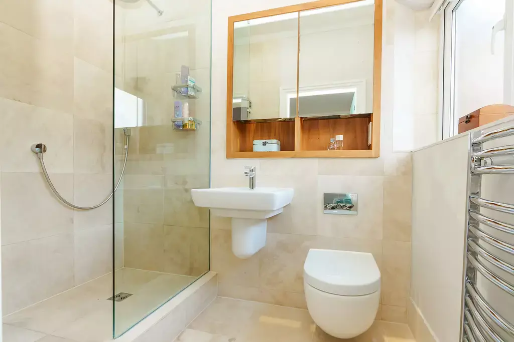 There are two double bedrooms, including a principal bedroom with a luxurious en-suite, and a family bathroom, both designed to a high specification.