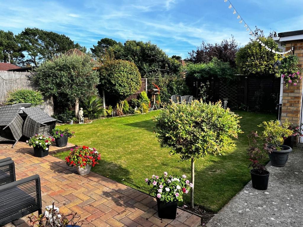 Well manicured gardens to the front and rear enjoying a southerly aspect. Flower beds and borders and outside tap.