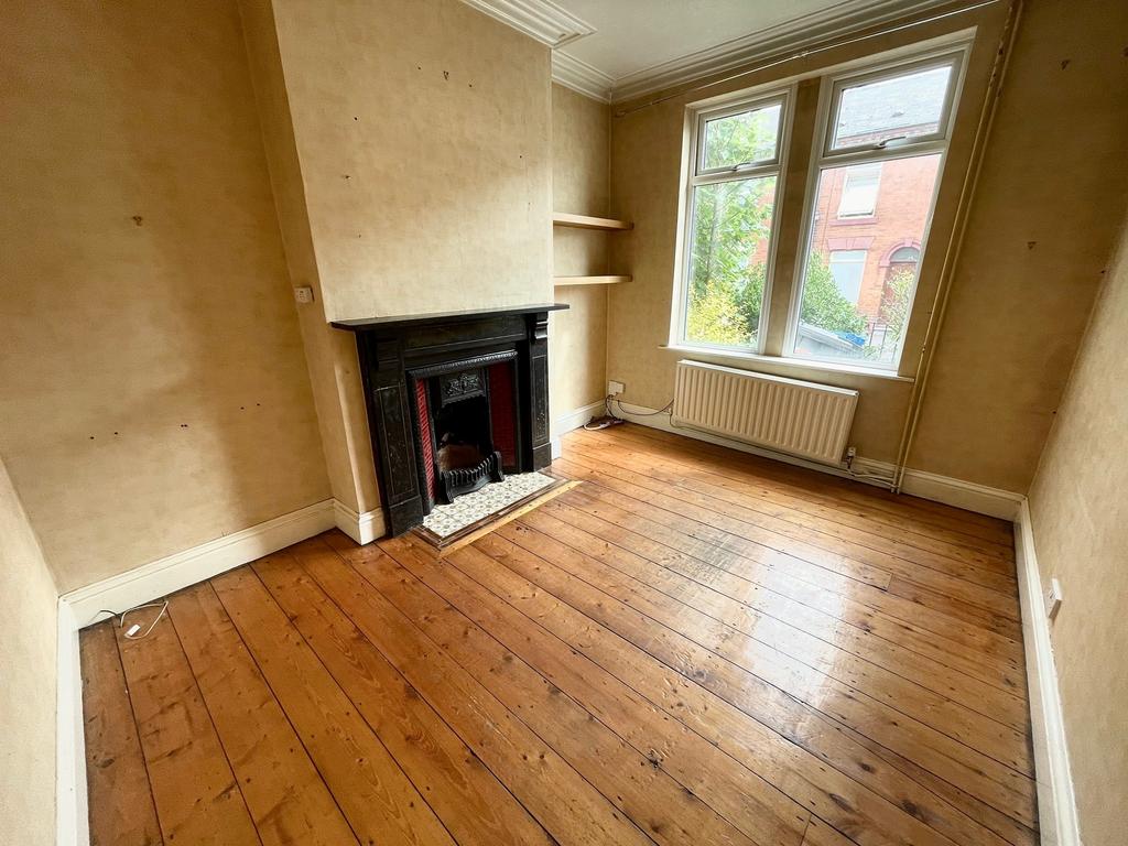Wooden floorboards, feature fireplace, twin UPVC double glazed windows, radiator.