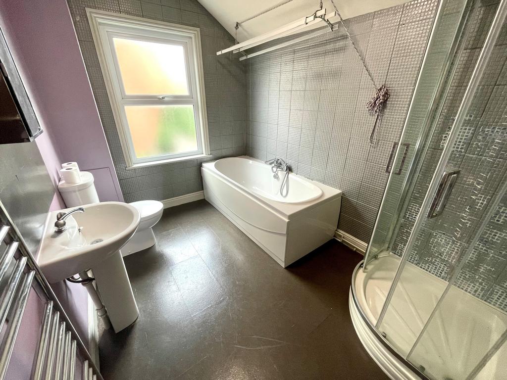 Spacious and fitted with a four piece suite comprising a deep bath with shower attachment, corner shower cubicle, wash basin and WC, UPVC double glazed window and chrome towel radiator.