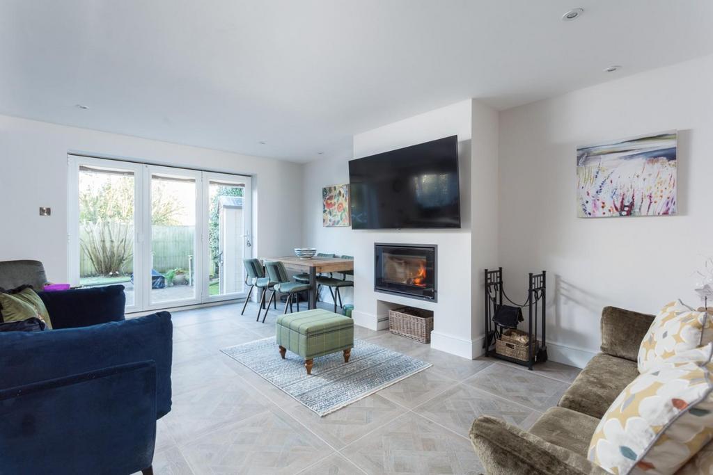The kitchen includes a bespoke range of built-in base units to three sides, Granite worktops and inset sink unit. There is an additional range of matching high level storage cupboards in addition to Granite upstands and tiled splashbacks. Included within the kitchen is a built-in Bosch combination oven in addition to a four-point induction hob unit with central extraction. There is a built-in Bosch dishwasher and plumbing for an American styled fridge freezer unit (available by separate negotiation). Bifold doors lead out onto the rear garden and there is ample space for a dining table and sofa. The kitchen features an inset wood burning fire and television aerial point. There is under flooring heating throughout the breakfast kitchen.