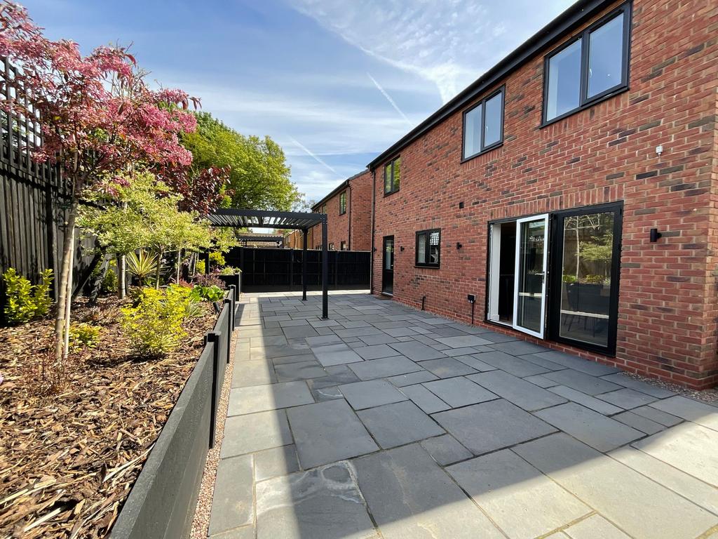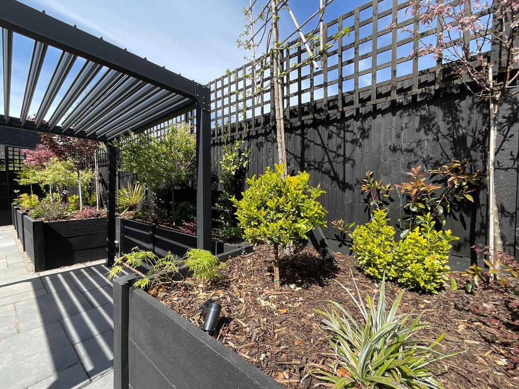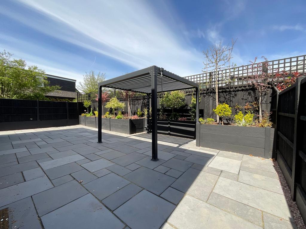 - Low maintenance, fully landscaped outdoor entertaining garden with planted raised beds and Indian stone patio along with a fitted Pergola, feature lighting, and multiple out door sockets.