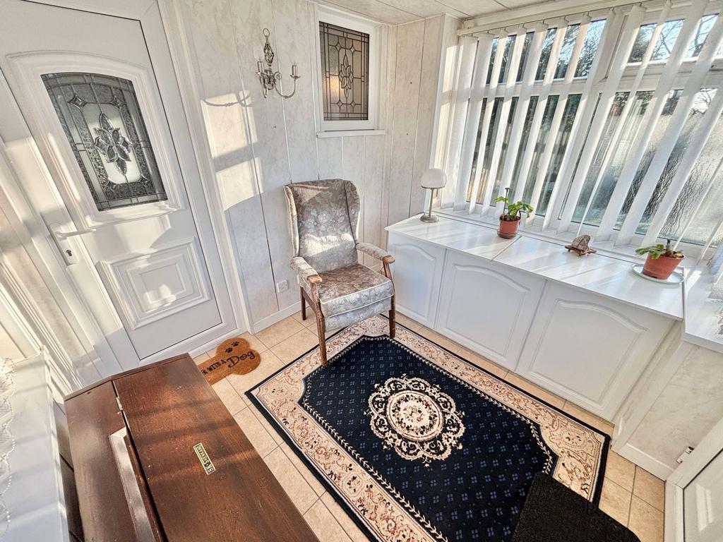 UPVC double glazed door to front aspect with windows surrounding. This large south facing porch has the potential to become a sun room.