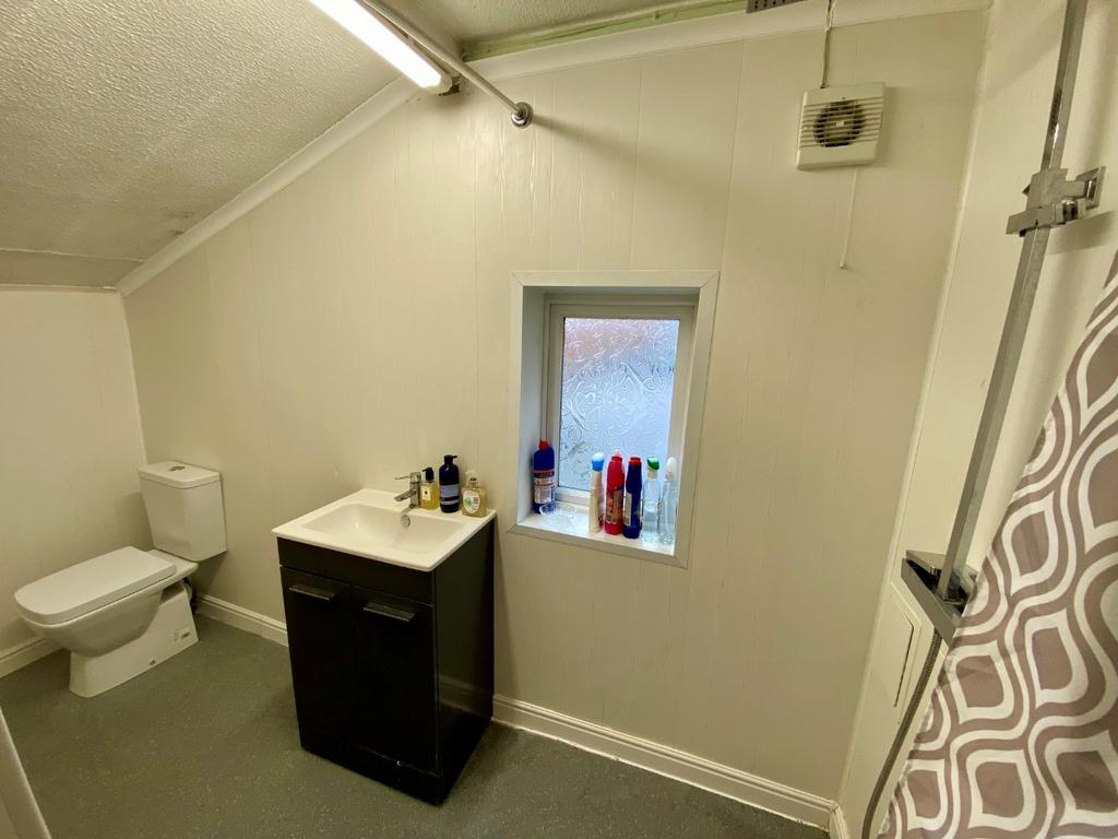 Obscure double glazed window to side elevation. Radiator. Wall mounted sink. WC.