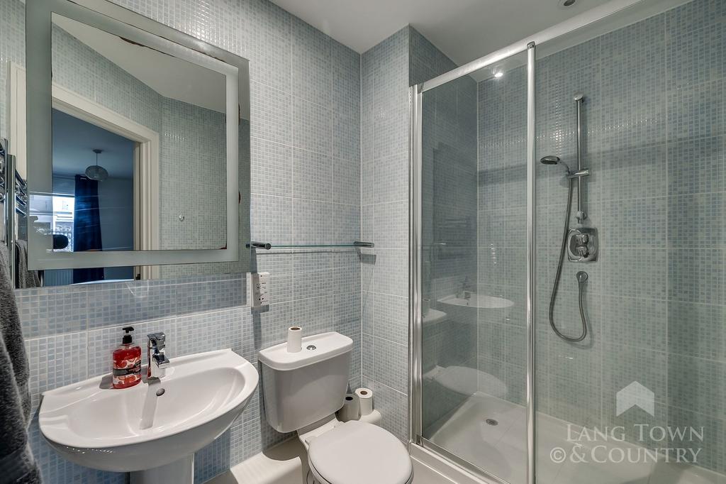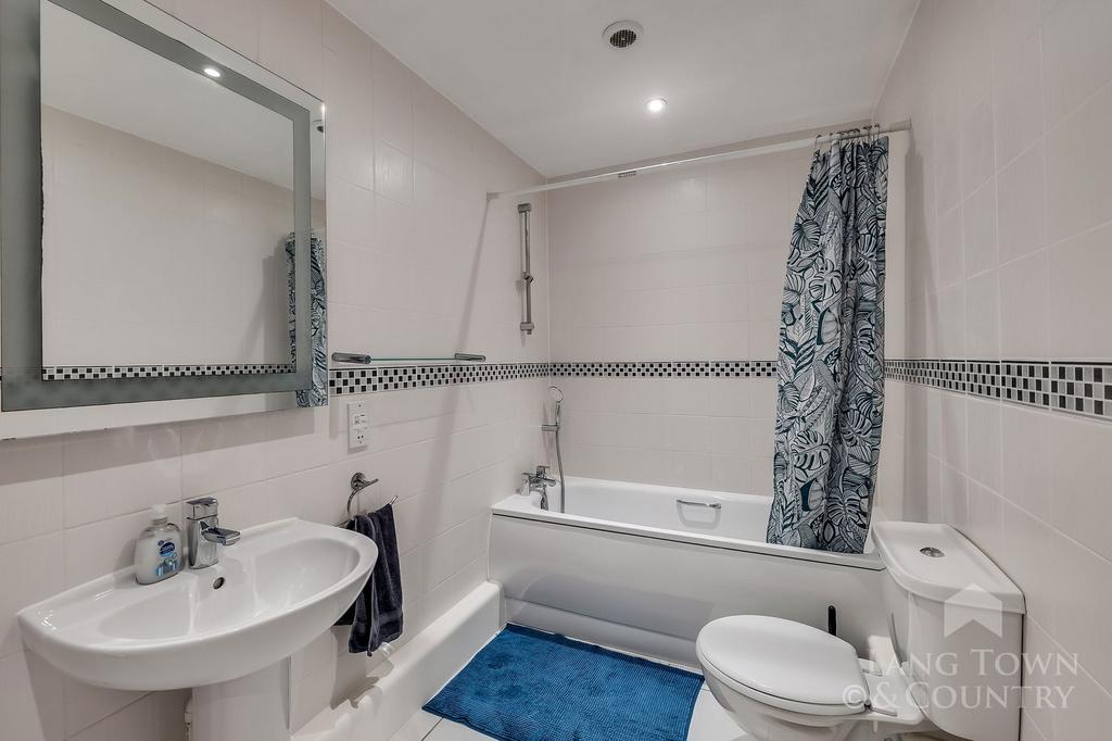 The master bedroom which enjoys fitted wardrobes enjoys views over the residents’ and has an en-suite shower room, comprises white suite with fully tiled walls and floors. The guest bedroom also shares the view over the residents' garden. A family bathroom once again is well fitted with white suite and fully tiled walls and floor.