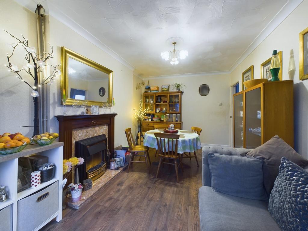 uPVC French doors into conservatory. Radiator. Feature coving. Electric fire.