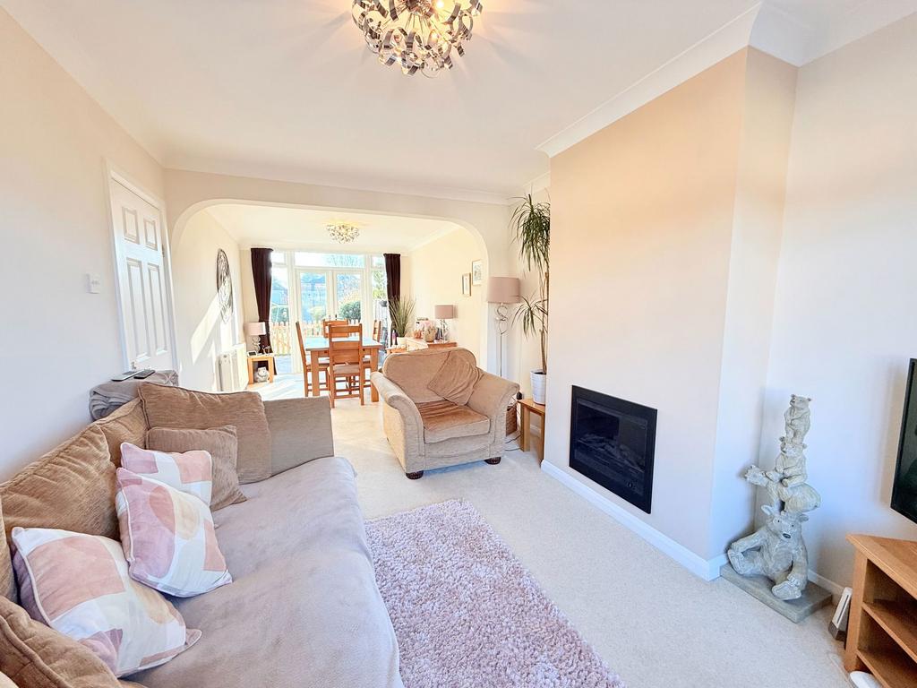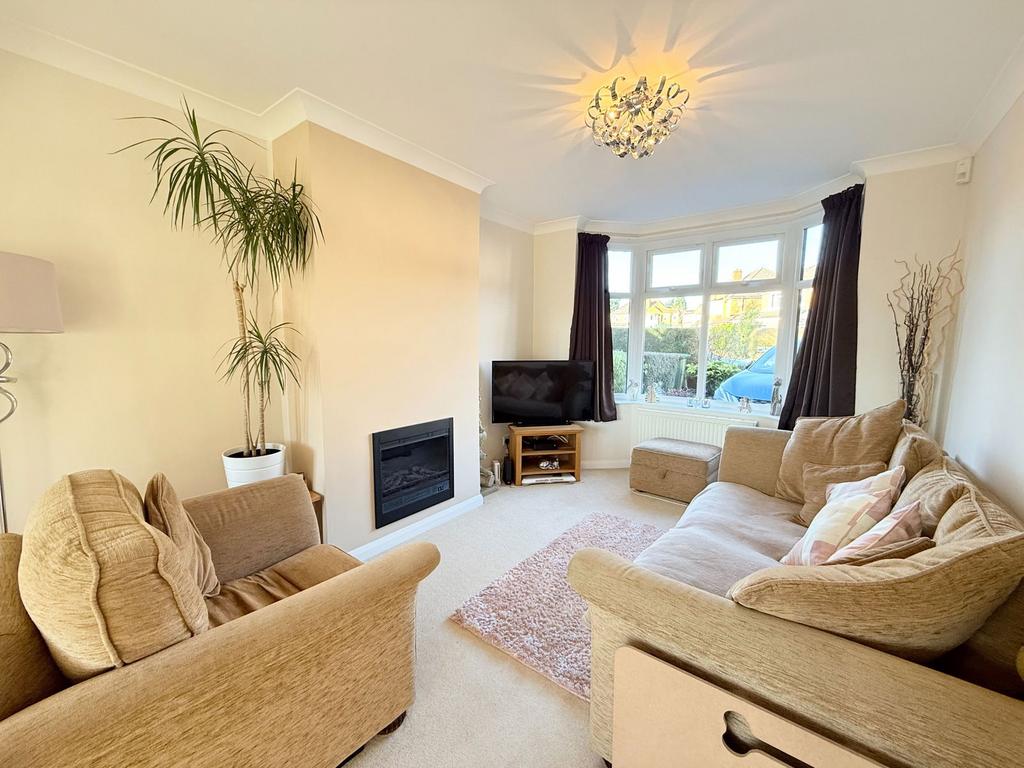With double glazed bay window to front elevation, double glazed windows incorporating French doors leading out to the rear garden, two radiators, two ceiling light points and electric fire suite